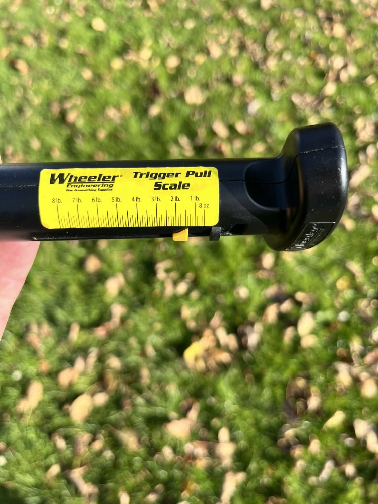 Odpor spouště jsem měřil váhou odporu spouště Trigger Pull Scale, opět 5 pokusů, zaznamenán nejvyšší (1,7 lb) a nejnižší výsledek (1,4 lb), průměr ze všech měření (1,55 lb). Velice konzistentní s nízkým odporem, velmi dobře čitelná. Opravdu špičková spoušť soutěžní úrovně.
